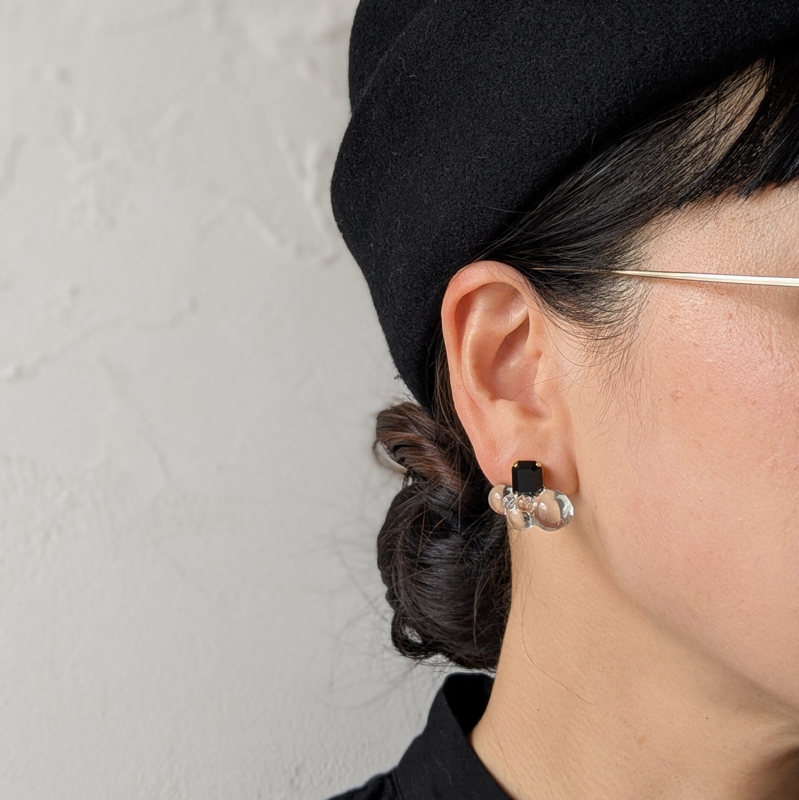 高品質なクリスタルのきらめきと、硝子のような透明感のあるクリアレジンが融合した耳飾りです。