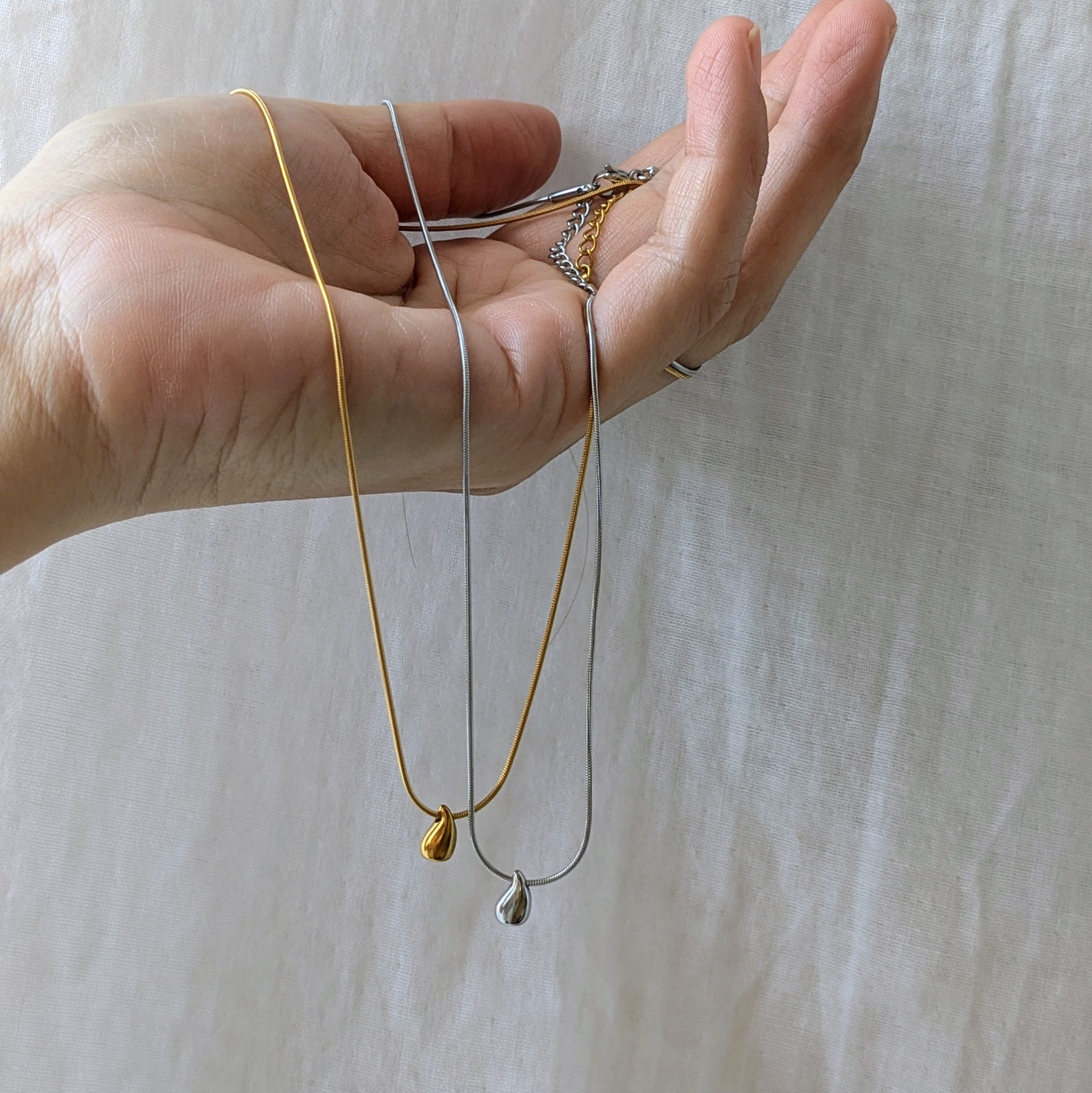 雫型のミニチャームが可愛いシンプルなネックレスです。