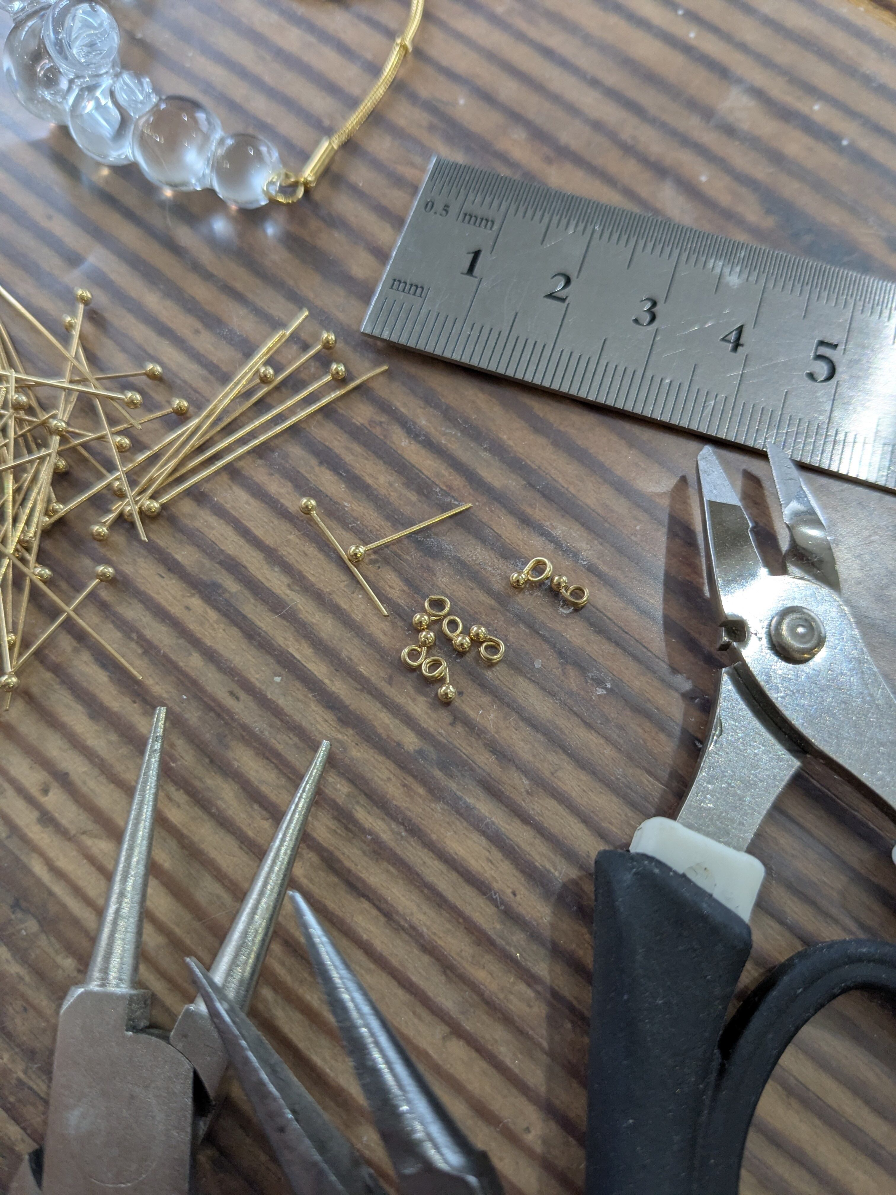 サージカルステンレスのpinの先にレジンをコーティングして雫のように仕上げました。