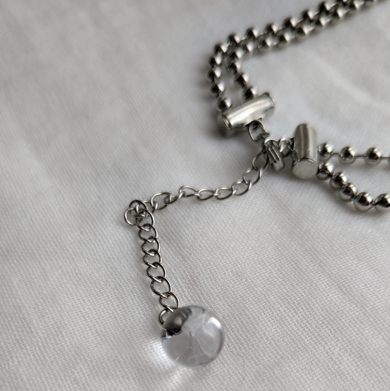 日常使いがし易い、2.5㎜のボールチェーンを2連にしました。