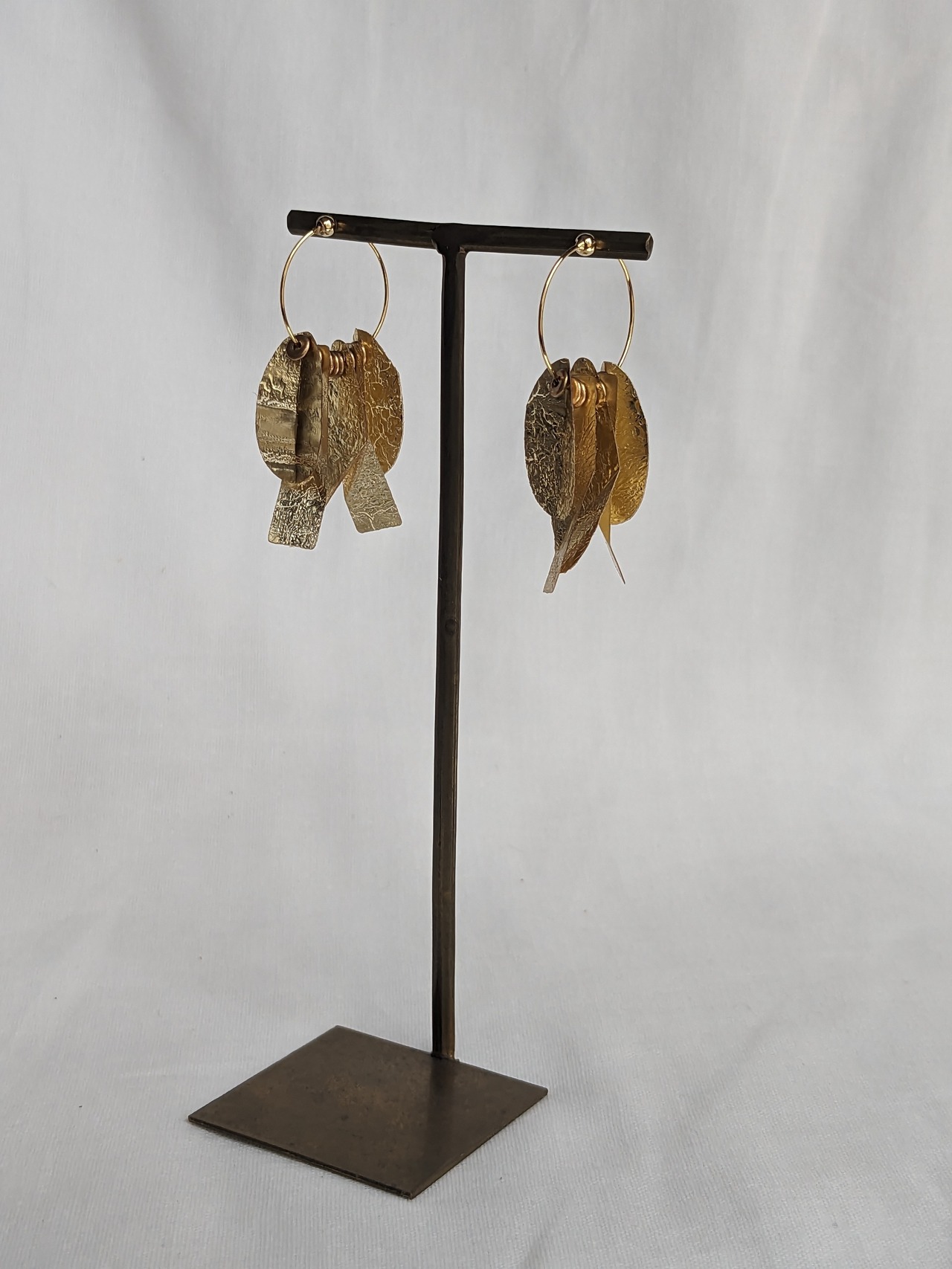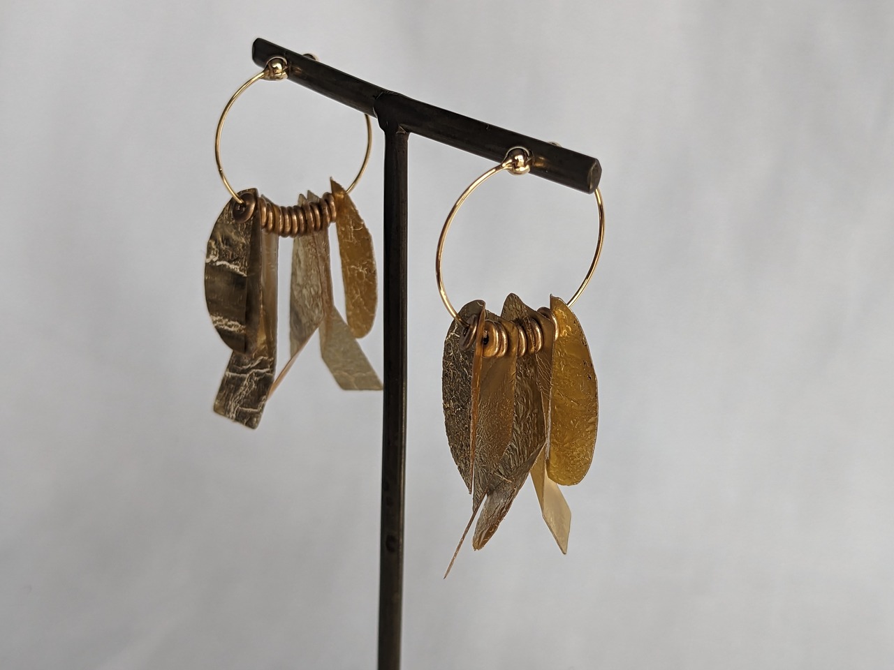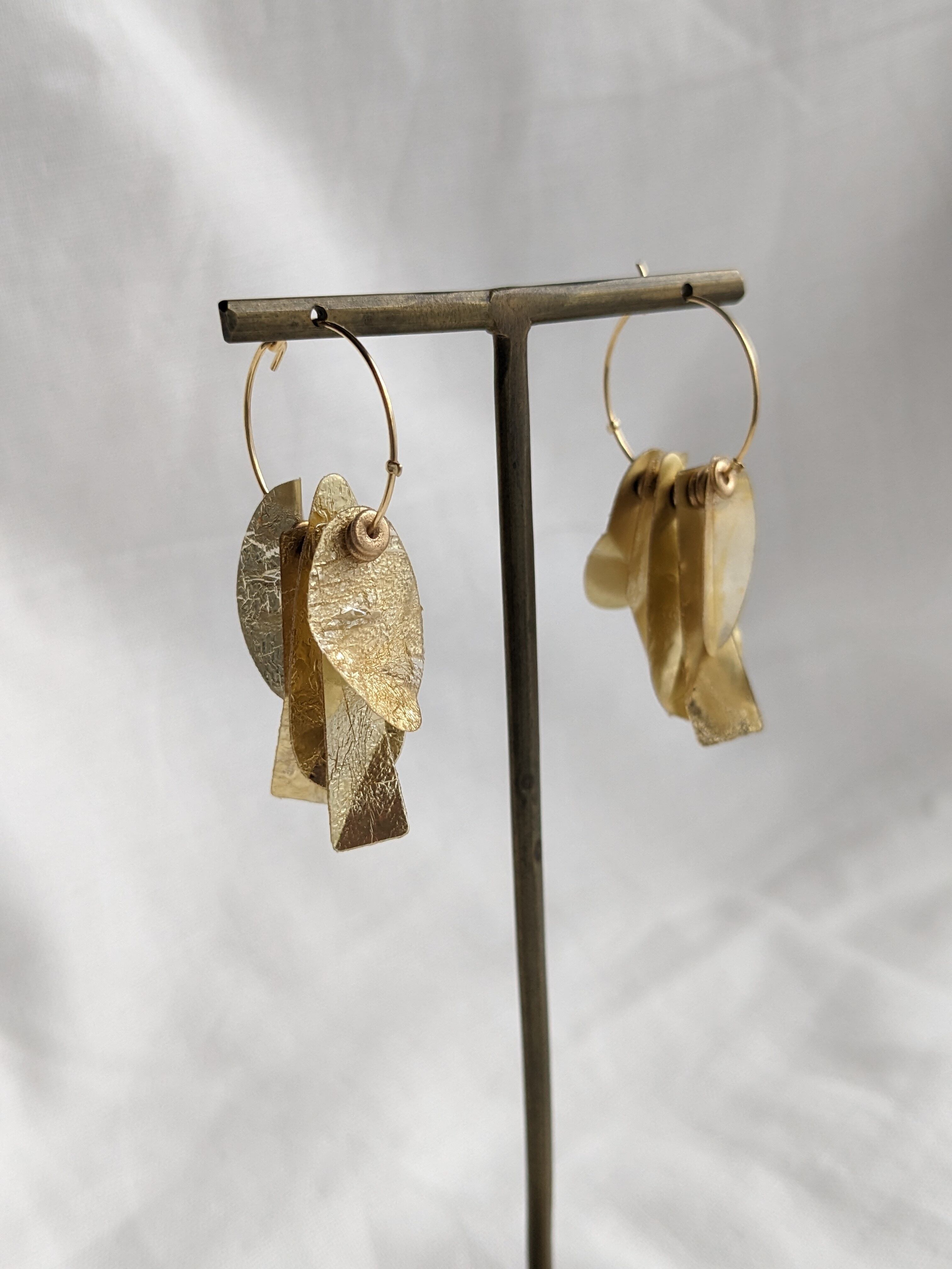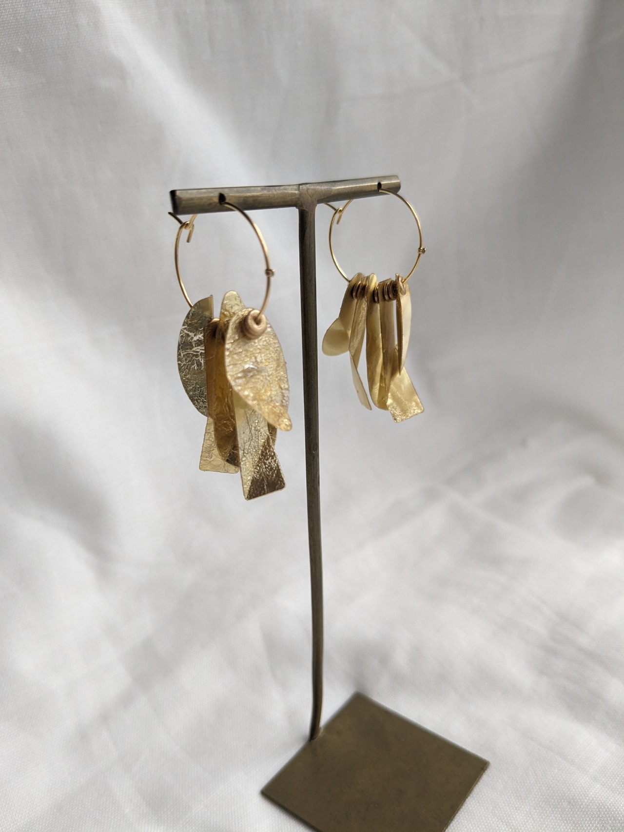 長さ形の違うシークインをランダムに折り曲げて、チェコビーズと合わせました。