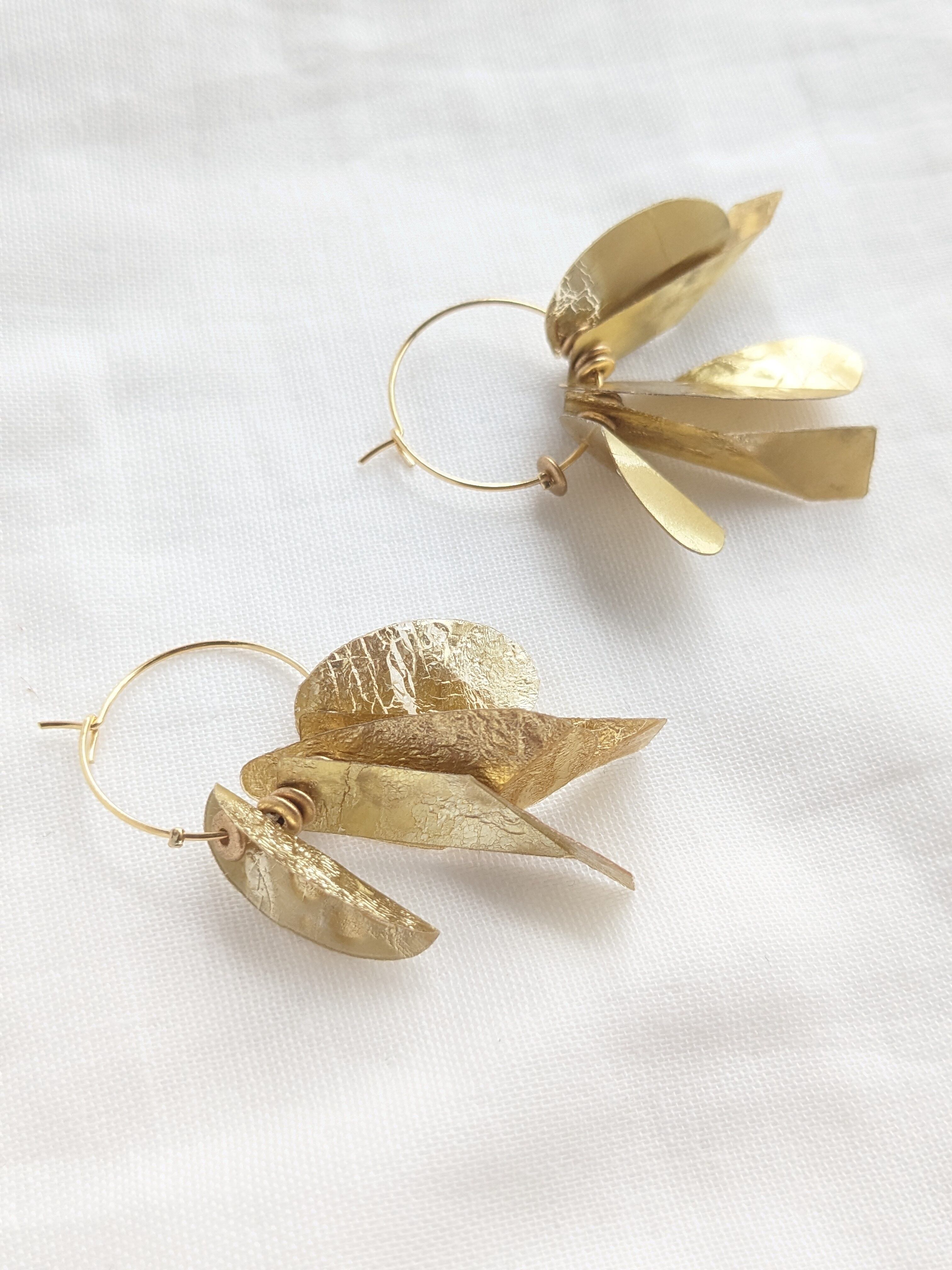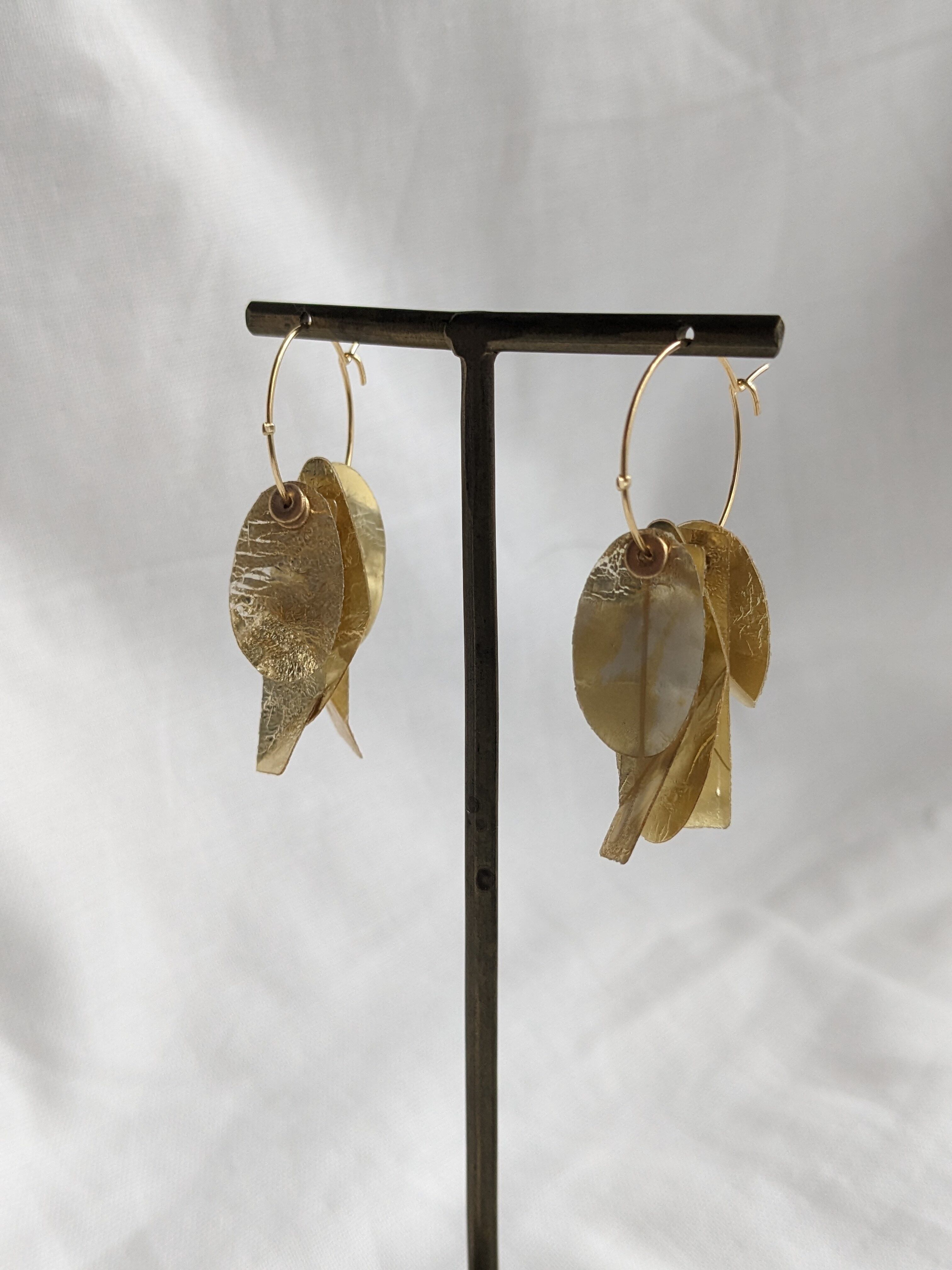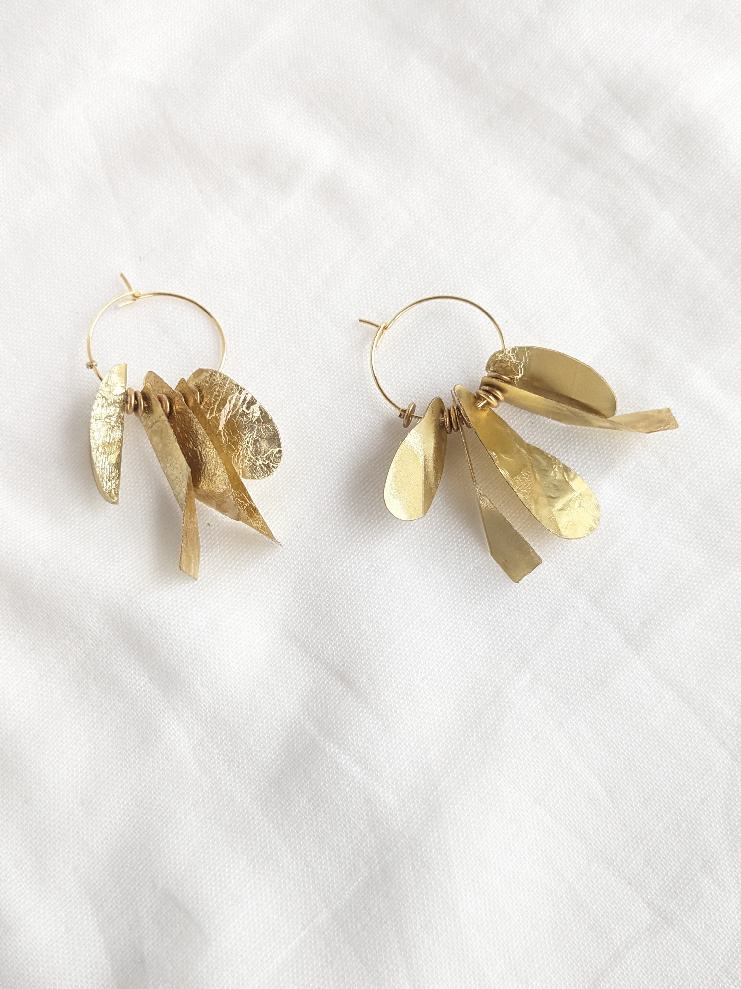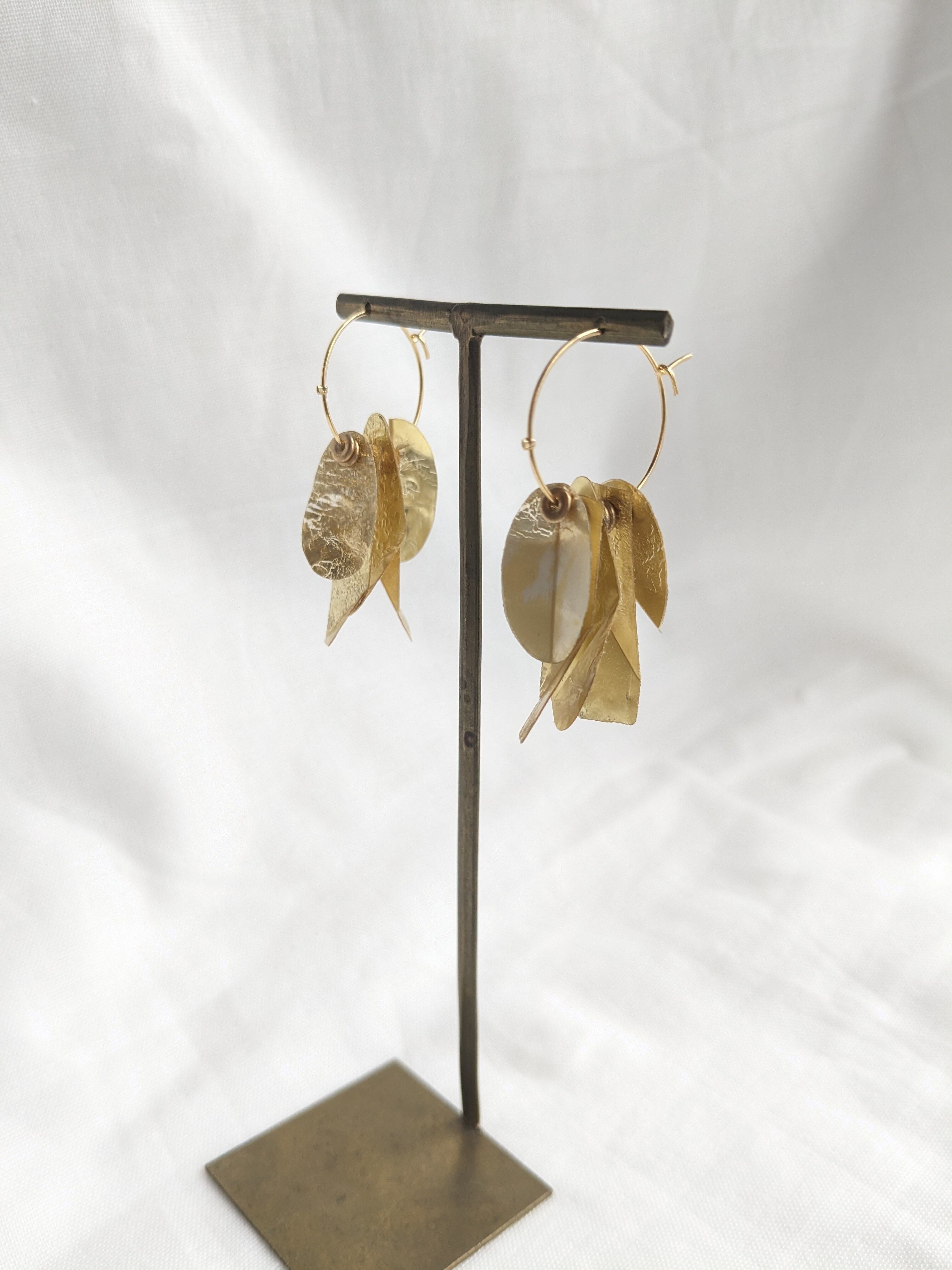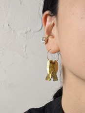 シンプルながらも、存在感のあるシークインの耳飾りでコーディネートのアクセントに。