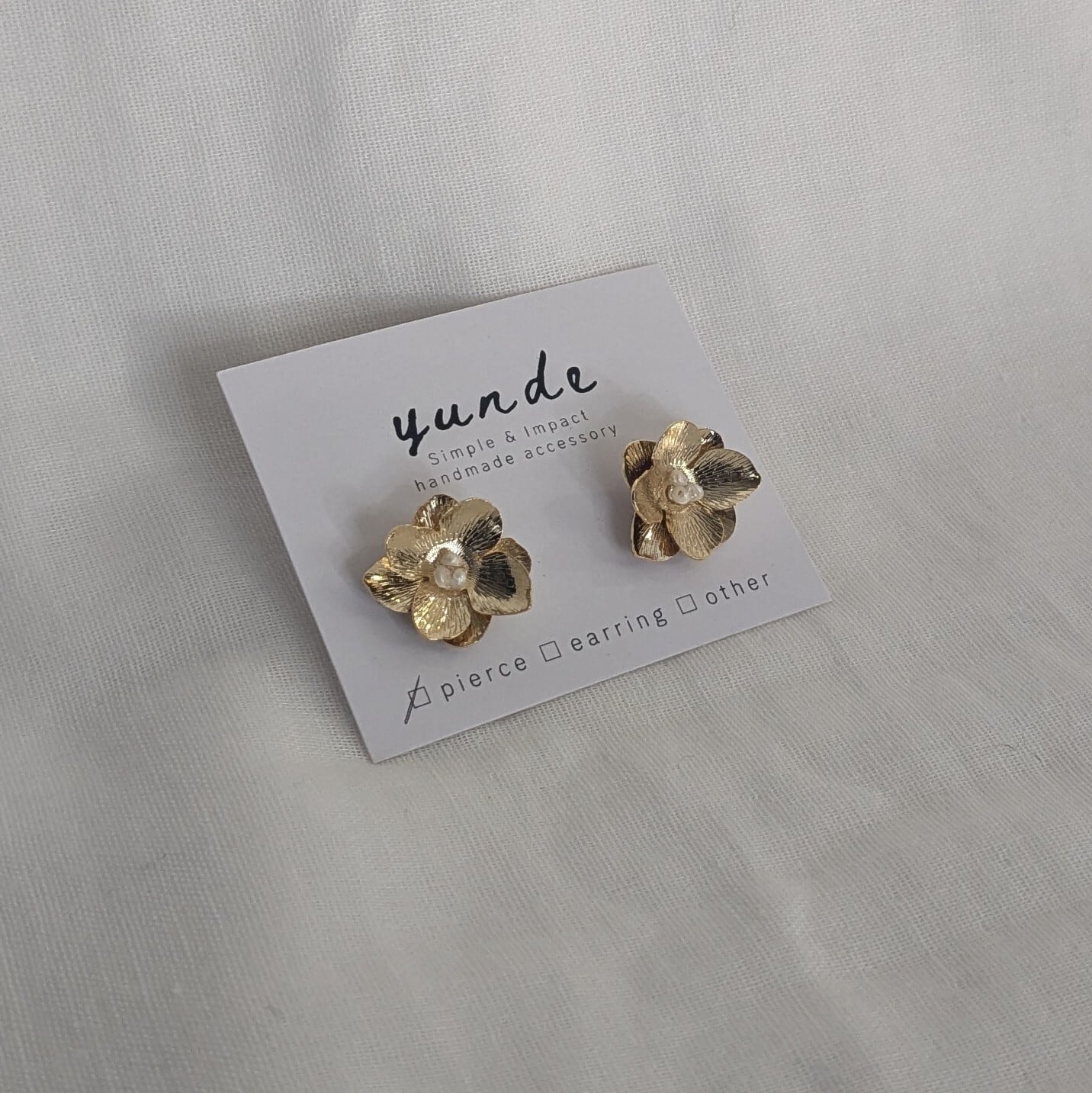 お花のメタルパーツに極小淡水パールを合わせて上品に仕上げました。