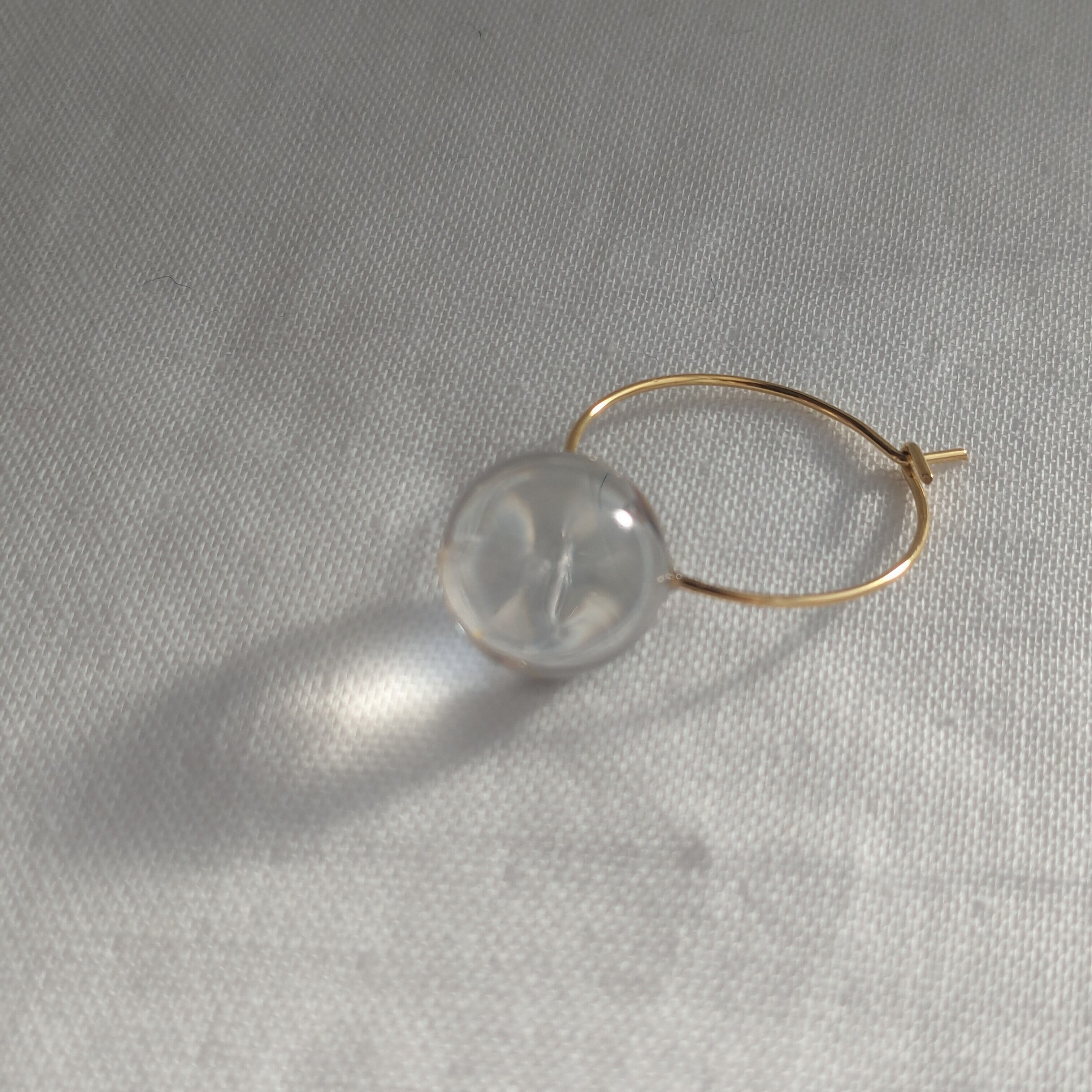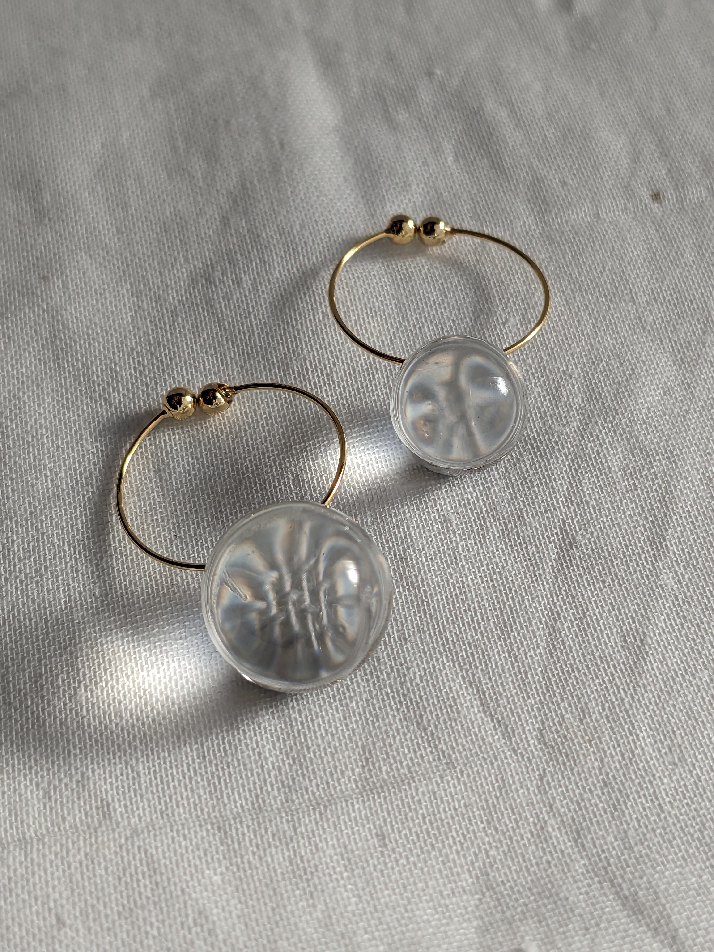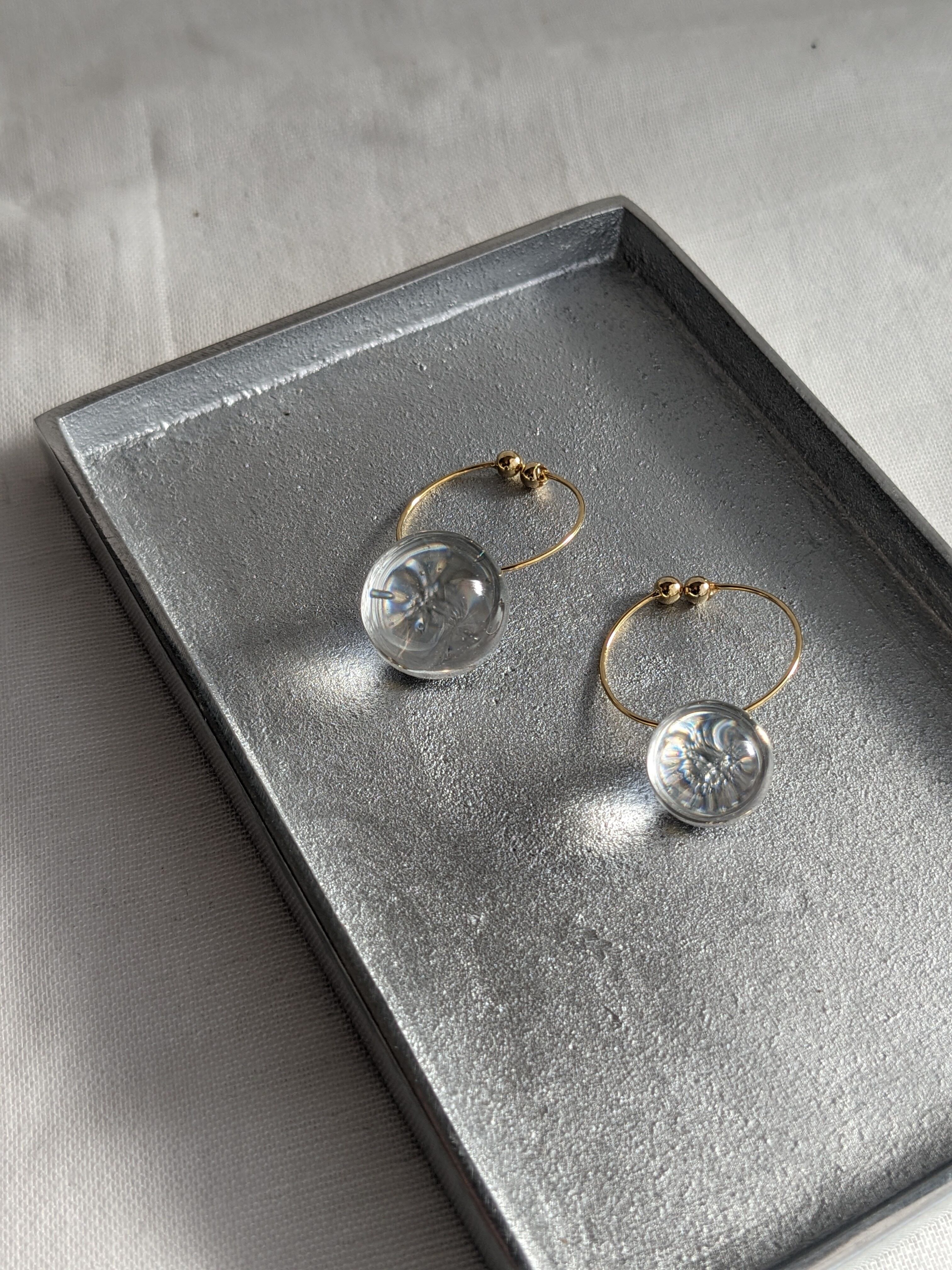 左右大きさの違うレジン球体をフープ金具と合わせた耳飾り。