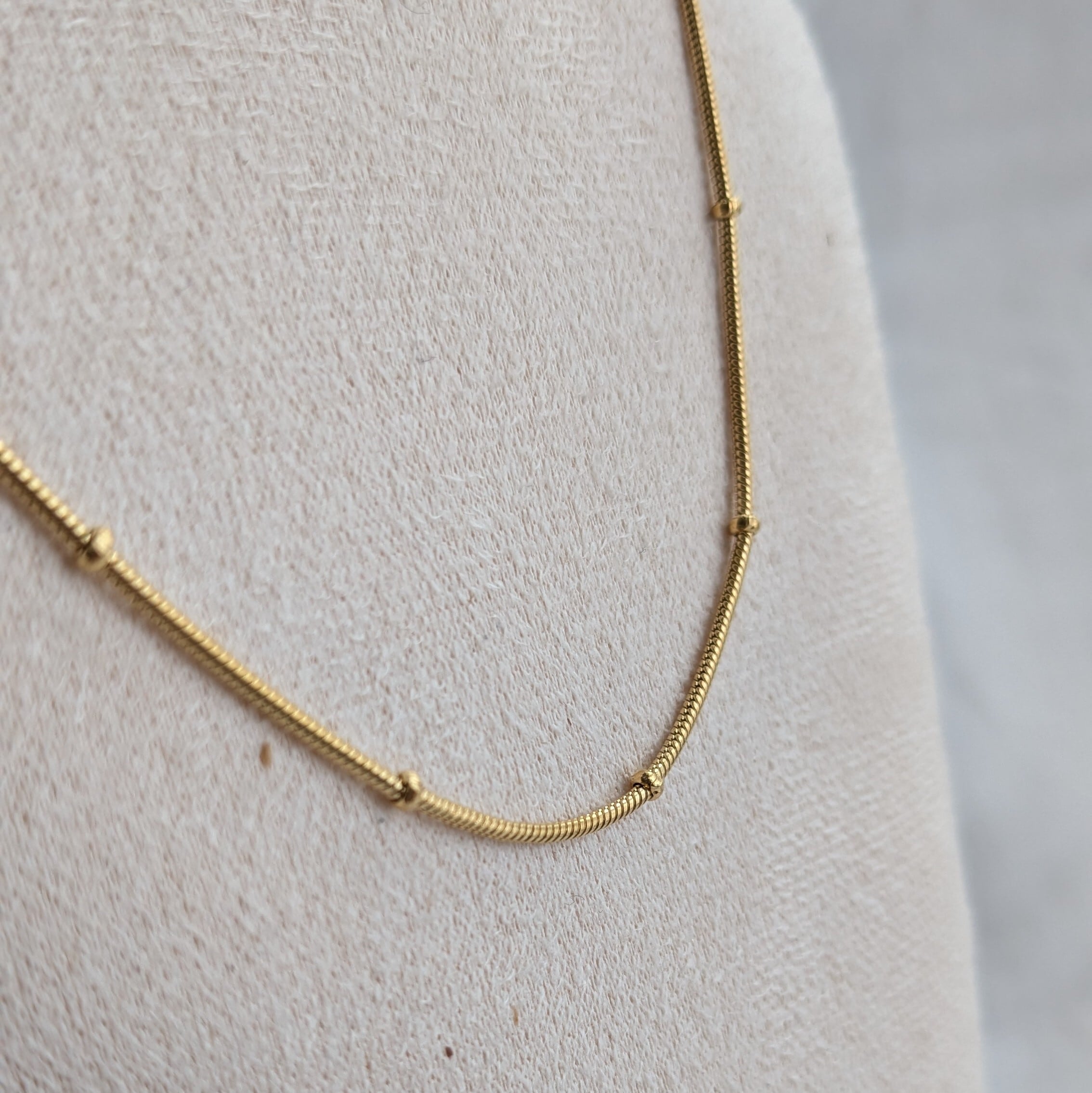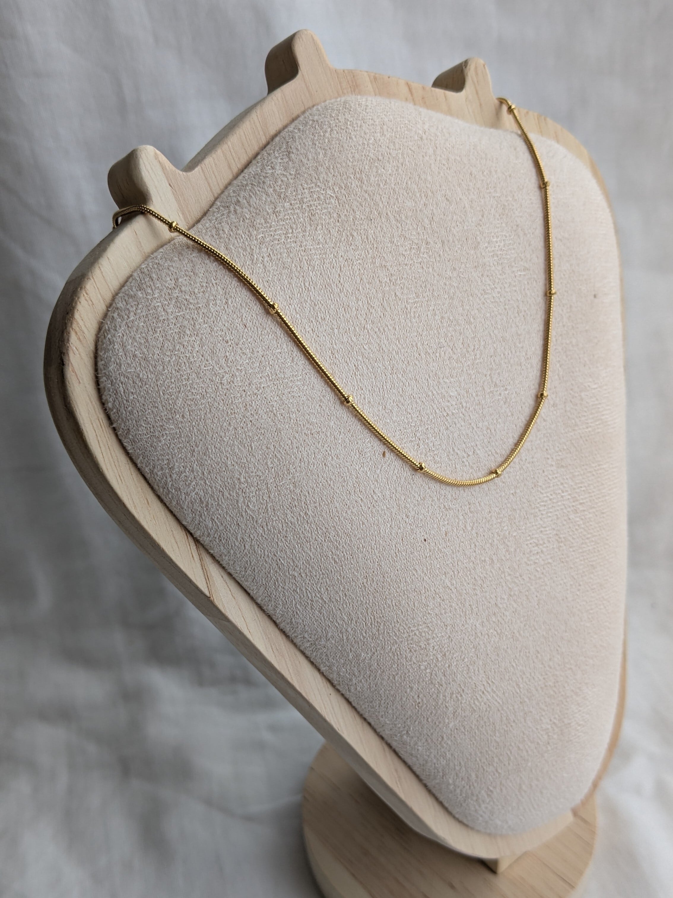 小さい玉がアクセントになっていて、シンプルながらも目を引くネックレスです。